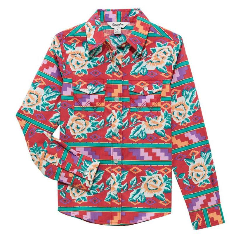 Wrangler – Chemise Western à Manches Longues – Motif Floral et Géométrique – Fille