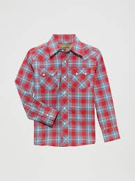 Wrangler – Chemise Western à Carreaux – Rouge et Bleu – Garçon