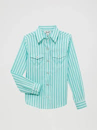 Wrangler – Chemise Western à Manches Longues Rayée – Turquoise / Blanc – Fille
