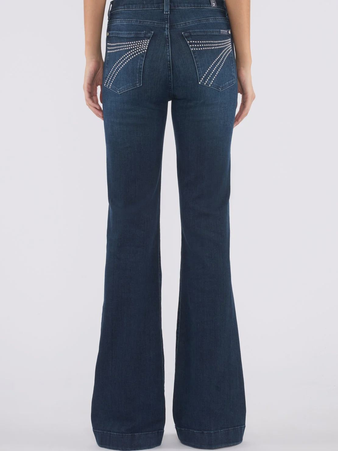 Le Dojo Baltimora de 7 For All Mankind se distingue par son style raffiné et audacieux. Sa coupe flare emblématique allonge la silhouette, tandis que sa teinte foncée Baltimora offre une allure moderne et polyvalente. Les poches arrière ornées de clous disposés en forme de « 7 » ajoutent une touche signature à la fois chic et affirmée.