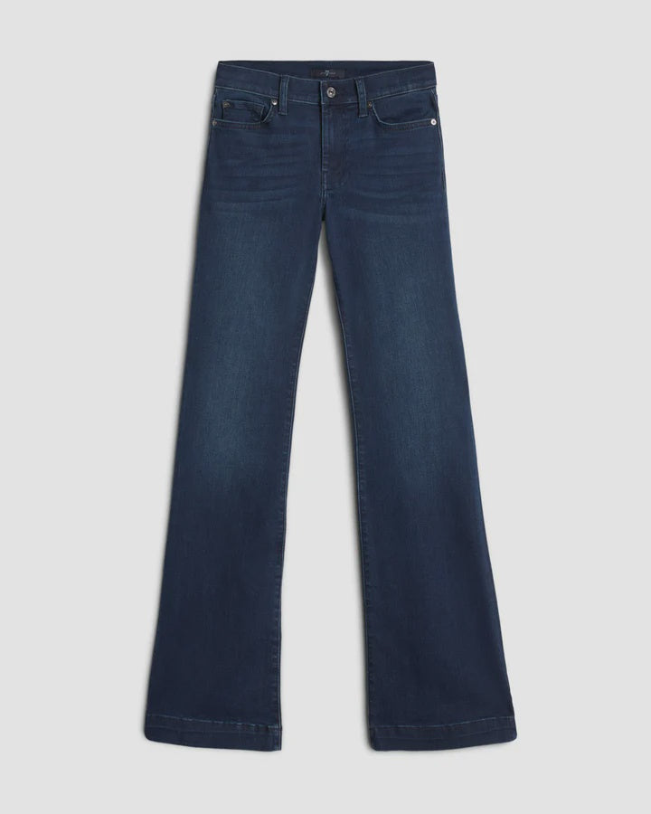 Le Dojo de 7 For All Mankind allie élégance et confort avec sa coupe flare emblématique. Sa couleur Blue Black Santiago, un noir profond subtilement travaillé, met en valeur une silhouette allongée et sophistiquée. Conçu dans un denim premium, il offre un tombé fluide et un maintien structuré, idéal pour un style chic et moderne.