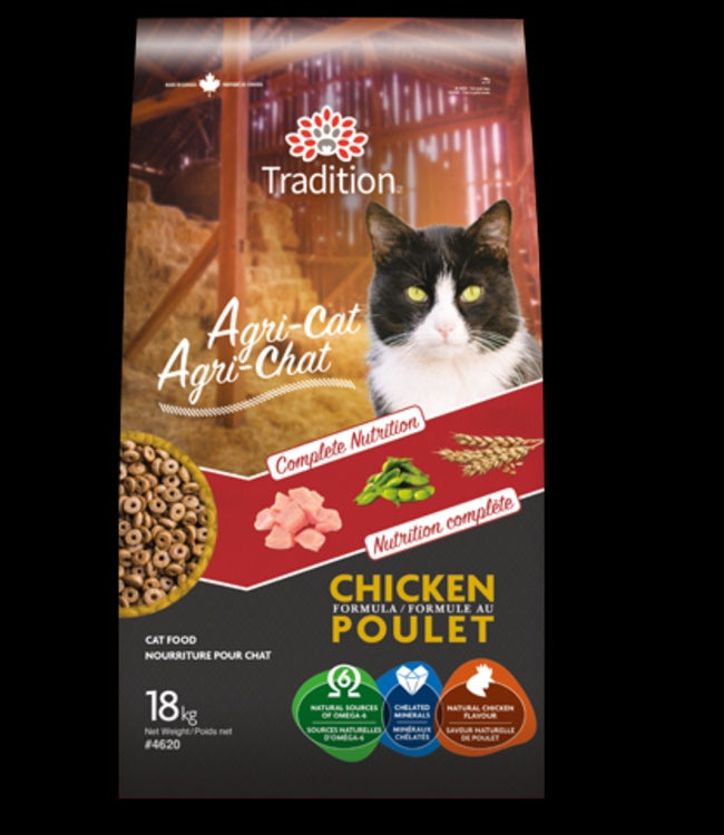 Si vous observez un changement dans la consommation de nourriture ou de la santé de votre chat, consultez votre vétérinaire. AgriChat est formulé pour rencontrer les niveaux nutritionnels établis par l’AAFCO pour l’alimentation des chats adultes.