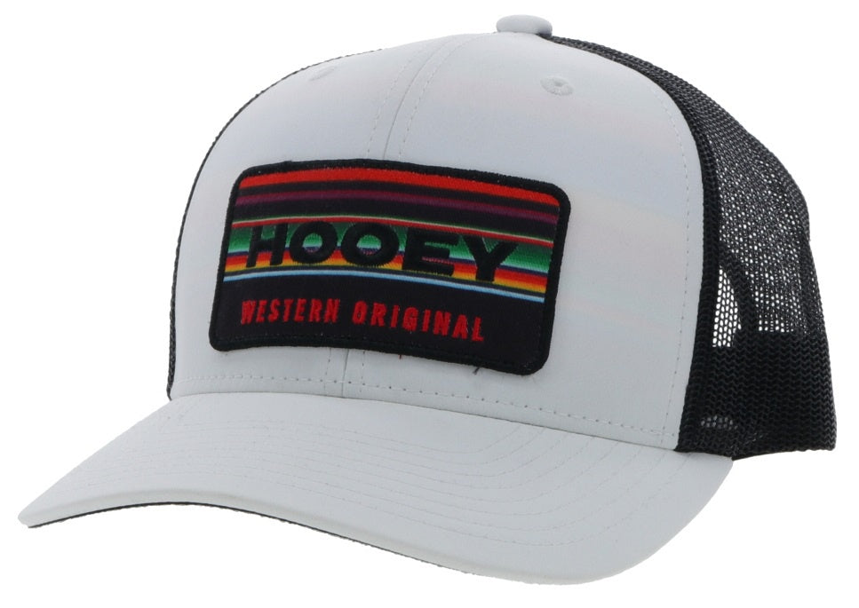 Hooey – Casquette Horizon Blanche – Trucker 6 Panneaux – Patch Rectangulaire Serape/Noir 2335T-WH