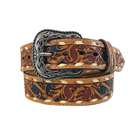 Ceinture main de 1 1/2” (38 mm) peint floral véritable cuir avec laçage, boucle en finition argentée.