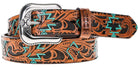 Ceinture en cuir pleine fleur Sundown 1.5 – Brun – Motif Aztec embossé & accents turquoise