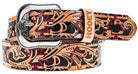 Ceinture en cuir pleine fleur Sundown 1.5 – Tan – Motif Aztec embossé avec accents noirs et rouges