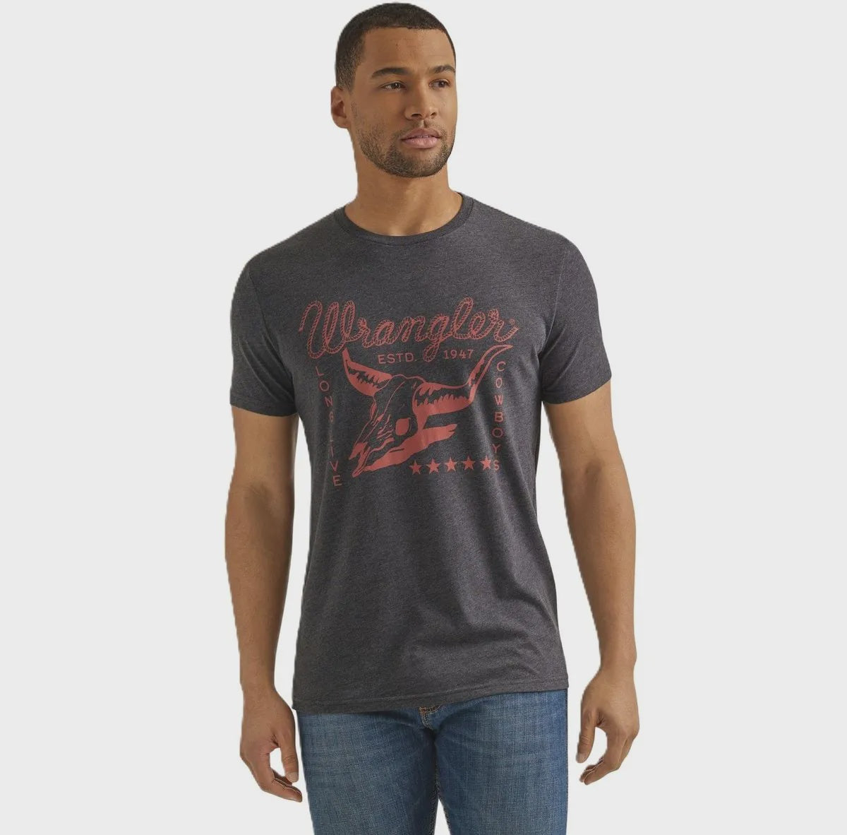 Wrangler T-Shirt Graphique Longhorn & Drapeau - Charcoal Heather - 112352828