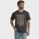 Inspiré de la légende du country George Strait, ce t-shirt Wrangler noir rend hommage aux racines américaines et à l’esprit de liberté. Le message "God Bless" imprimé à l’avant incarne fierté, foi et tradition, le tout avec une touche western assumée.