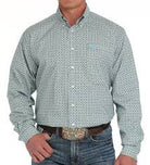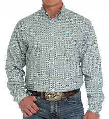 Cette chemise western Cinch se distingue par son motifs géométriques fins sur fond bleu menthe pâle, apportant une touche de fraîcheur et de raffinement au style cowboy classique. Conçue pour offrir confort et durabilité, elle est parfaite autant pour une journée de travail au ranch que pour une sortie stylée. Le logo turquoise brodé ajoute une signature western discrète et élégante.