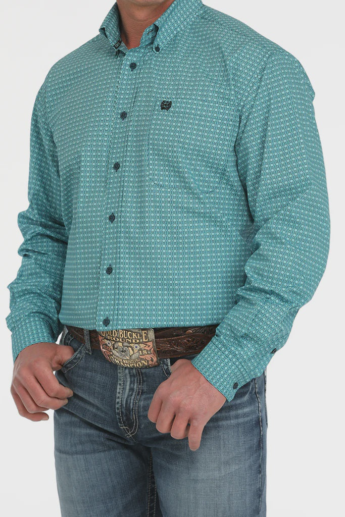 Apportez une touche audacieuse à votre style western avec cette chemise à manches longues Cinch, conçue pour les passionnés d’authenticité et d’élégance. Son imprimé géométrique sur fond vert éclatant attire le regard tout en conservant une allure raffinée. Fabriquée avec soin pour offrir un confort optimal en selle comme en ville, cette chemise combine parfaitement fonctionnalité et attitude cowboy.