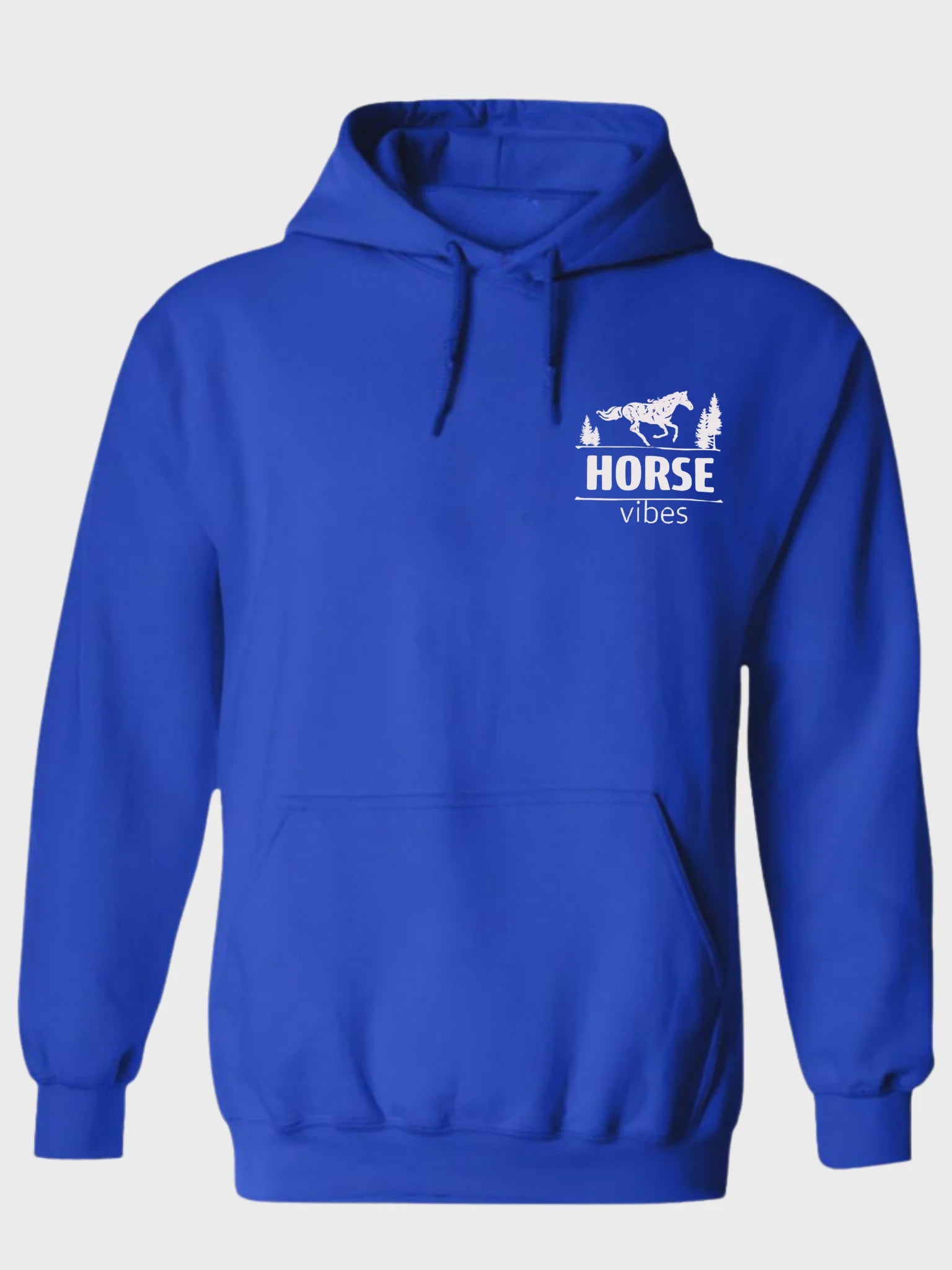 Confectionné dans un molleton doux et chaud, il est parfait pour les journées fraîches ou les soirées décontractées. Il présente un logo discret Horse Vibes sur le devant, une poche kangourou pratique et un capuchon ajustable pour un look à la fois simple, pratique et stylé.