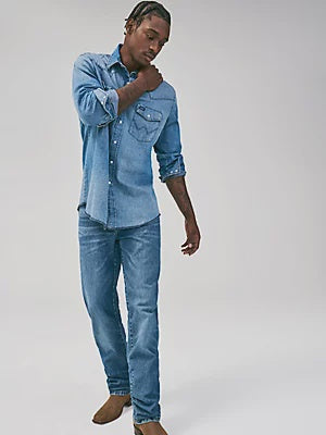 Ancrés dans les détails classiques de Wrangler® et dans un lavage vieilli, le Jean Cowboy Cut® Regular Fit inspiré du vintage deviendra rapidement votre nouveau préféré. Il est fabriqué en coton avec juste une touche d’élasticité pour plus de confort. Ces jeans pour homme présentent une taille mi-haute, une coupe régulière au niveau du siège, et une jambe légèrement fuselée qui tombe parfaitement sur les bottes. La meilleure partie ? Vous obtenez un look usé sans avoir à l’assouplir.