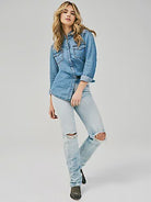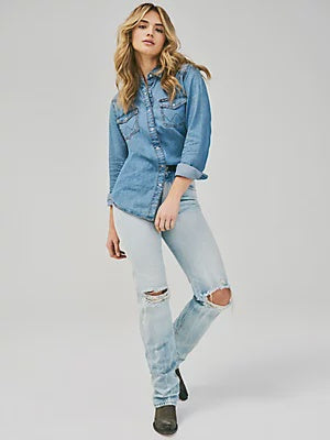 Son délavé vintage usé, ses détails vieillis et ses coutures emblématiques en font une pièce authentique au style résolument cowgirl.