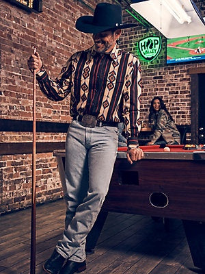 Véritable icône de l’Ouest, le Wrangler® Cowboy Cut® Original Fit – Bleach est conçu pour le travail, la selle et le style pur cowboy. Avec sa taille naturelle, sa jambe droite et son denim rigide, il respecte les standards des compétitions de rodéo et des vrais travailleurs de ranch.