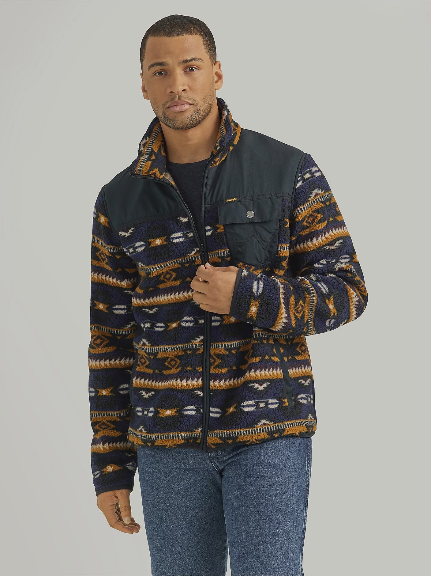 Wrangler® – Veste Zip Ripstop à Empiècement Aztec & Doublure Sherpa – 112352970