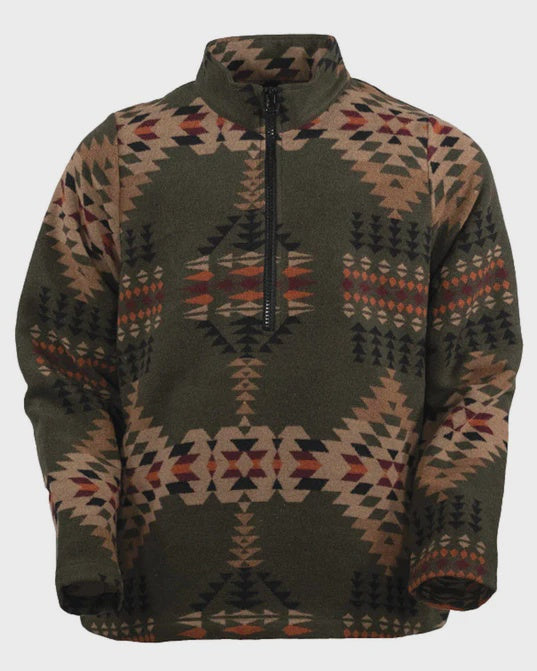 Confortable, chaud et fidèle à l’esprit western, ce chandail fleece olive à motif Aztec est l’allié idéal pour les journées fraîches. Léger mais isolant, il offre un excellent équilibre entre mobilité et chaleur, parfait pour le ranch, le plein air ou les moments de détente après la selle. Son col montant et sa demi-glissière ajoutent une touche pratique tout en conservant une allure authentique.