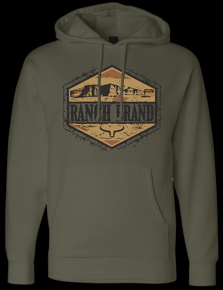 Inspiré par les vastes étendues arides et le courage de ceux qui les traversent, le hoodie "Desert" de Ranch Brand marie parfaitement l’allure militaire à l’esthétique western. Sa teinte "army" verte rappelle les terres sauvages, tandis que le visuel de désert imprimé à l’avant évoque chaleur, silence et immensité.