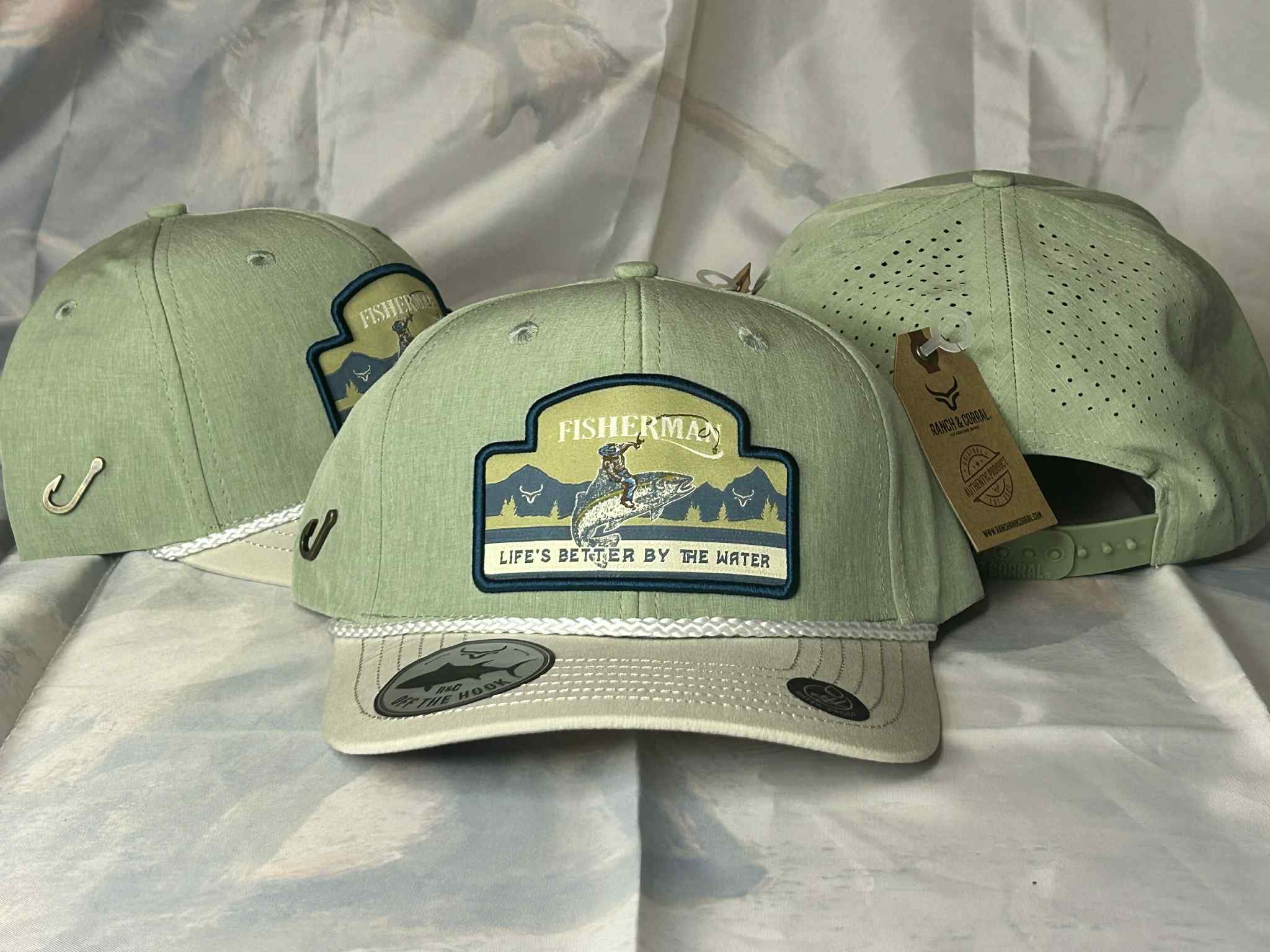 Affiche ton amour du plein air avec cette casquette Ranch & Corral inspirée du mode de vie pêcheur. Sa teinte vert sauge et ses détails beige s’agencent parfaitement à un look nature décontracté. Le patch illustré “Fisherman – Life’s Better by the Water” met en avant l’esprit d’aventure au bord de l’eau, tandis que les crochets décoratifs métalliques ajoutent une touche unique.