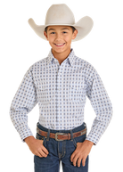 Chemise Western à Manches Longues – Blanc Motif Bleu – Garçon