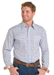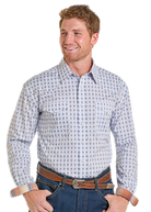Chemise Western à Manches Longues – Blanc Motif Bleu
