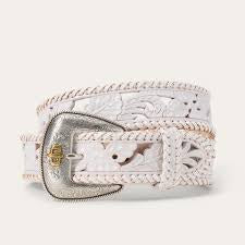 Ceinture Western 1 1/2" – Blanc avec Détail Découpé et Boucle Stetson®