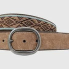 Une touche moderne inspirée du sud-ouest américain. Cette ceinture Roper au fini tan présente une sangle en cuir synthétique ornée d’une broderie Aztek aux teintes contrastées, offrant un style distinctif et affirmé. Sa boucle ovale argentée complète parfaitement son allure western contemporaine.