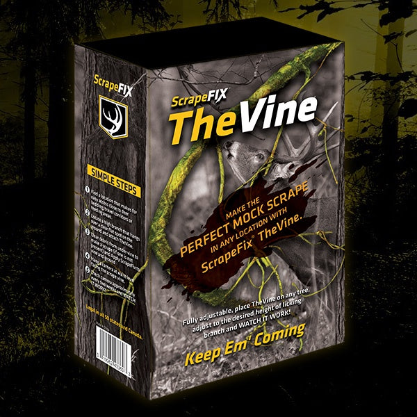 Vous pouvez désormais créer la fausse souille parfaite à n’importe quel endroit grâce à TheVine de ScrapeFix. Entièrement réglable, placez TheVine sur n’importe quel arbre, ajustez-le à la hauteur souhaitée, et REGARDEZ-LE FONCTIONNER ! Tout passionné de fausses souilles sait que les branches lécheuses suspendues verticalement sont la clé. Les cerfs de Virginie (Whitetails) ne peuvent pas résister à ces branches et parcourront de longues distances pour visiter ces endroits.
