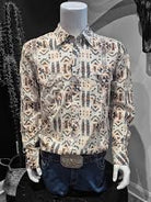Affirmez votre style cowboy avec classe grâce à cette chemise Shack Story au motif Aztec raffiné. Sur fond crème éclatant, les motifs terreux inspirés du Sud-Ouest américain offrent un look à la fois audacieux et sophistiqué — parfait pour les rodéos, les festivals ou les soirées country.