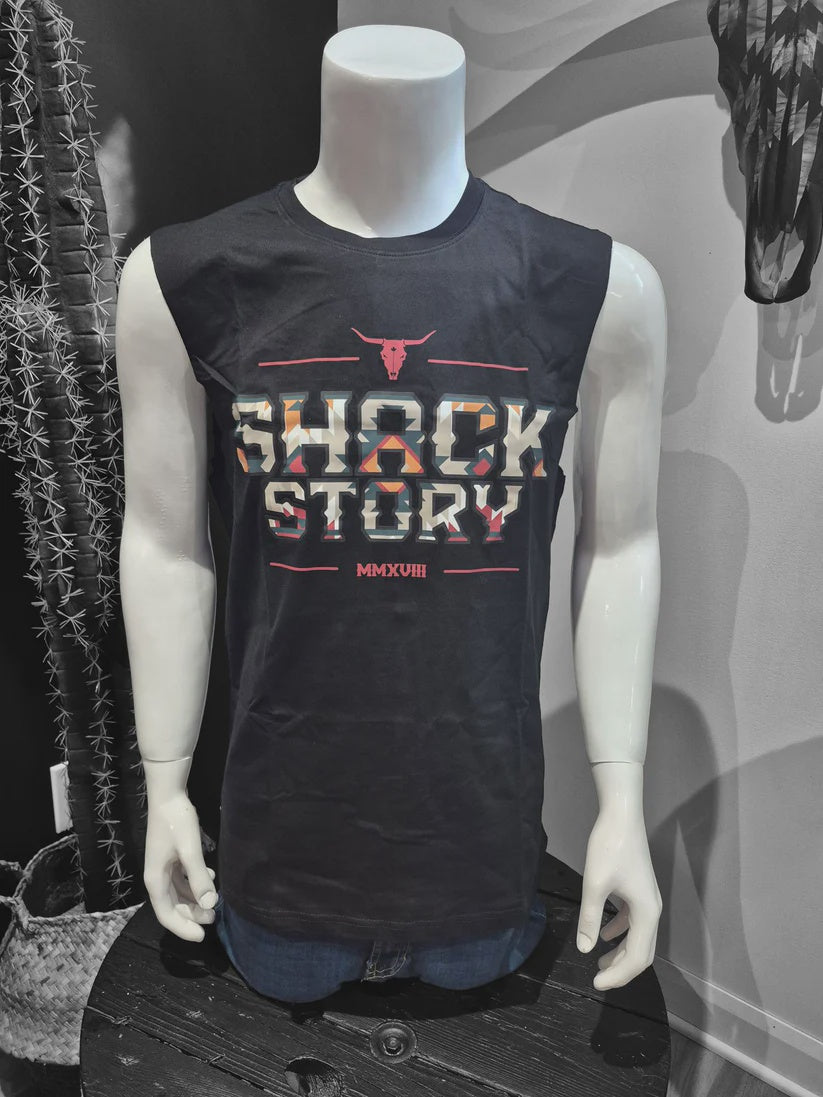 Conçu pour les vrais cowboys du Nord, ce débardeur Shack Story allie puissance visuelle et confort estival. Avec son grand logo imprimé sur la poitrine — une typographie western stylisée aux couleurs tribales — il incarne l’attitude fière et assumée de la marque. Le chiffre romain MMXVIII rappelle fièrement l’année de fondation de Shack Story.