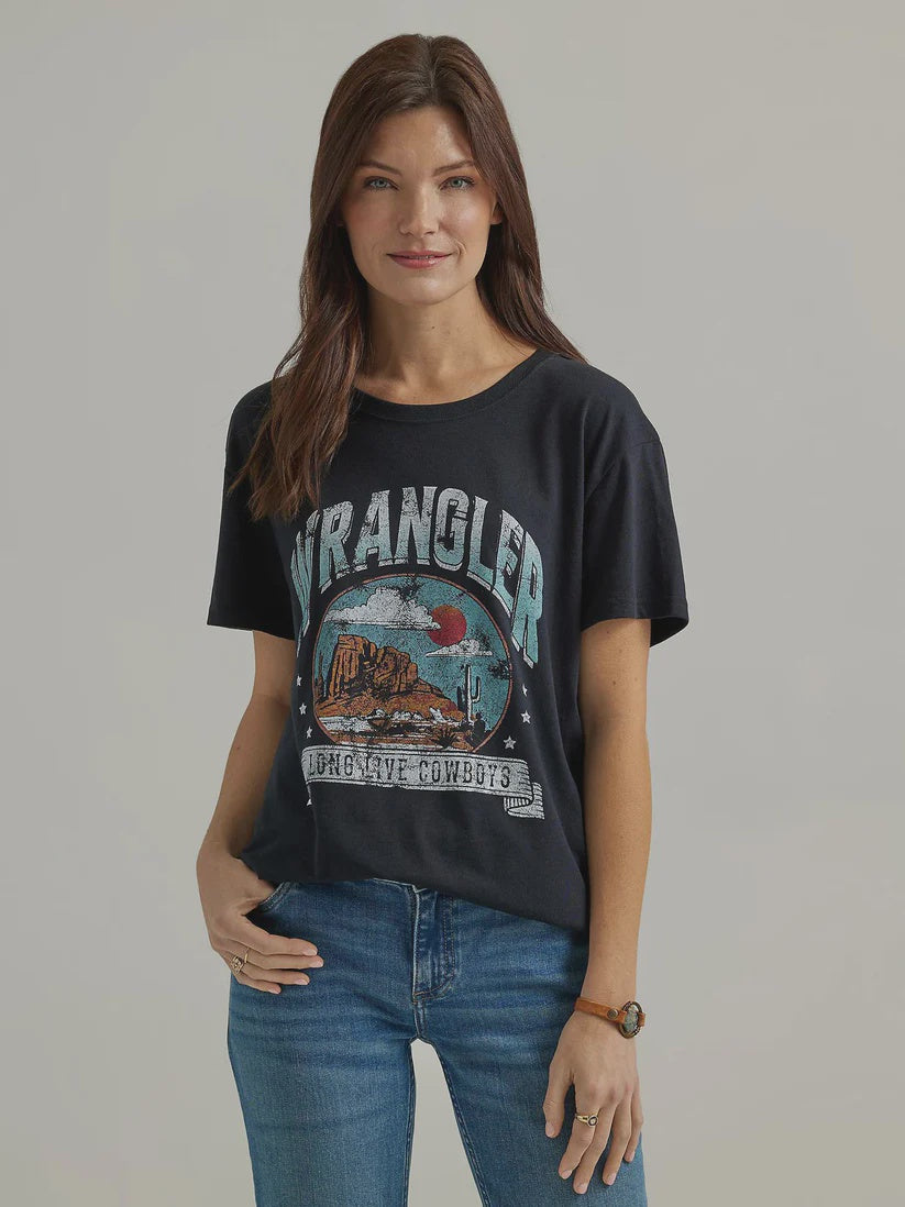Wrangler® – T-shirt "Long Live Cowboys®" – Coupe Boyfriend – Jet Noir – 112344198