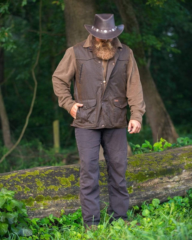 Notre veste Magnum en toile huilée ''oil skin'' est le partenaire idéal pour une journée fraîche. Elle possède un soufflet de cavalier, de grandes poches et une poche de dissimulation en prime.