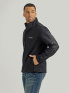 Alliant fonctionnalité et style western, le manteau Softshell Wrangler Logo White Jacket en noir est conçu pour ceux qui exigent confort, durabilité et allure marquée. Sa construction softshell imperméable et respirante t’offre une protection efficace contre les éléments, tandis que le logo Wrangler blanc brodé sur la poitrine affirme fièrement ton appartenance à la légende western.